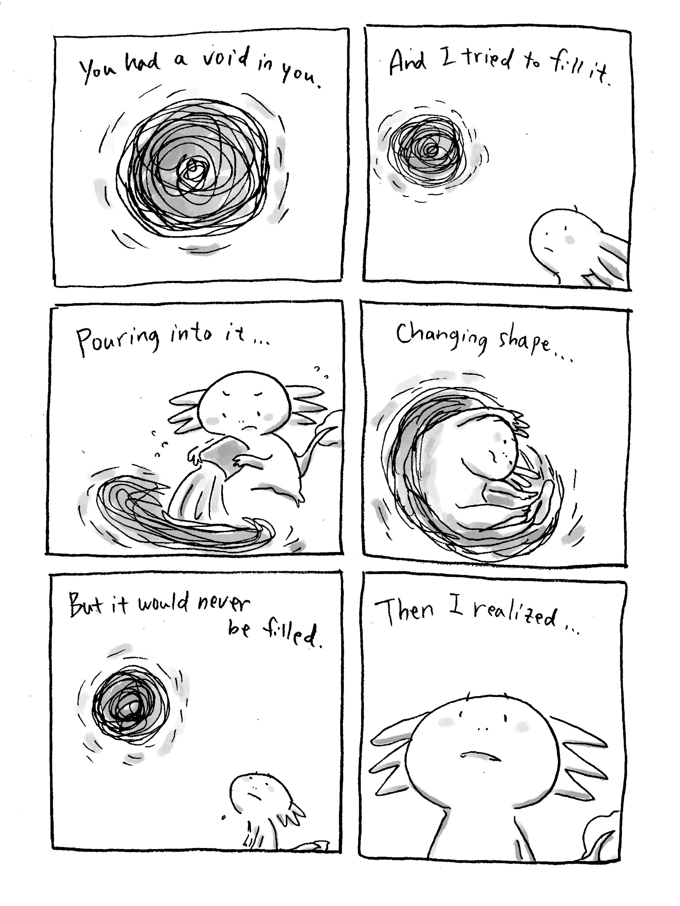You can’t fill someone’s void. You can’t “fix it” for them, or even help them, no matter how desperately you want to, no matter how much you love them, if they don’t want it (and I mean, really want it, not just saying they do).